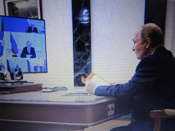Der russische Präsident Vladimir Putin führt eine Videokonferenz mit den Ständigen Mitgliedern seines Sicherheitsrats, 01.10.2025 – Screenshot einer Aufzeichnung der Kreml-Administration