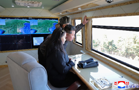 Distanz zur Mutter (links im Bild), aber Mittelpunkt der Herrscherfamilie: Tochter Kim Ju-ae, die im Februar 2026 ihren 14. Geburtstag begeht – Foto: KCNA